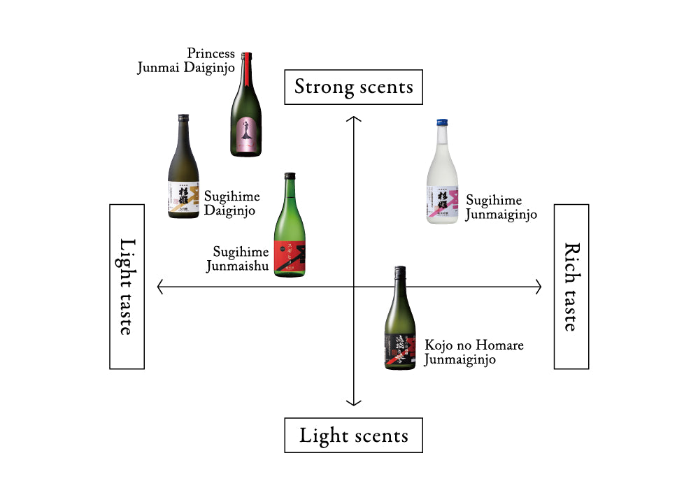 Characteristically brilliant in scent, impossible to guess that it s Sake. Enjoy the refreshing aroma with a soft aftertaste.
