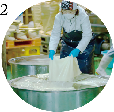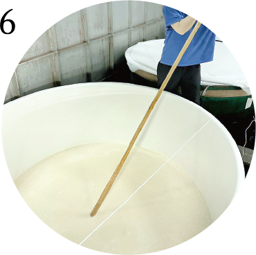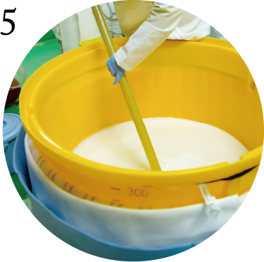 We put water, steamed rice, koji, and yeast into a tank to create a fermentation starter, or moto.