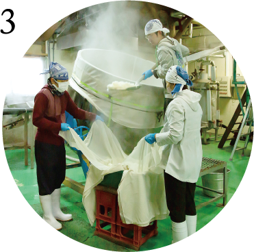 By squeezing the fermented moromi,it is separated into sake and sake lees and becomes clear sake.